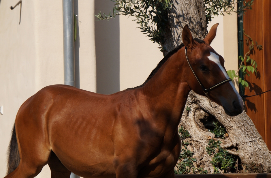 Auffallend gute Bewegung ........guter Schritt......elastischer Trab.....schöne Galoppade...........er bringt alles mit was man sich von einem absolut unverdorbenem Jungpferd wünscht.