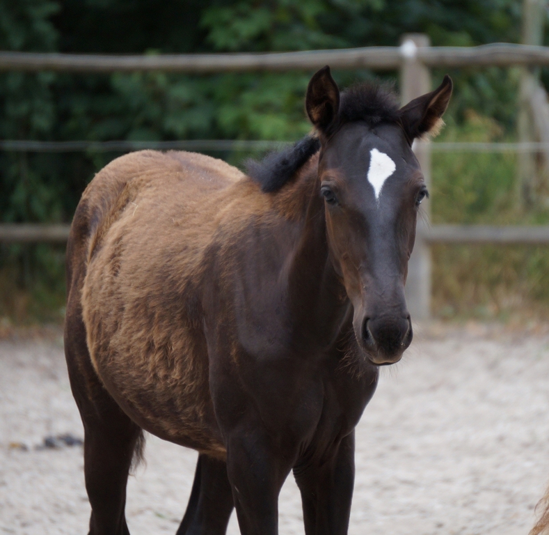 wunderbares großes lackschwarzes (durch die Sonne wirkt sie braun auf den Fotos)Stutfohlen mit ganz excellentem Charakter. Sehr liebenswürdig und super