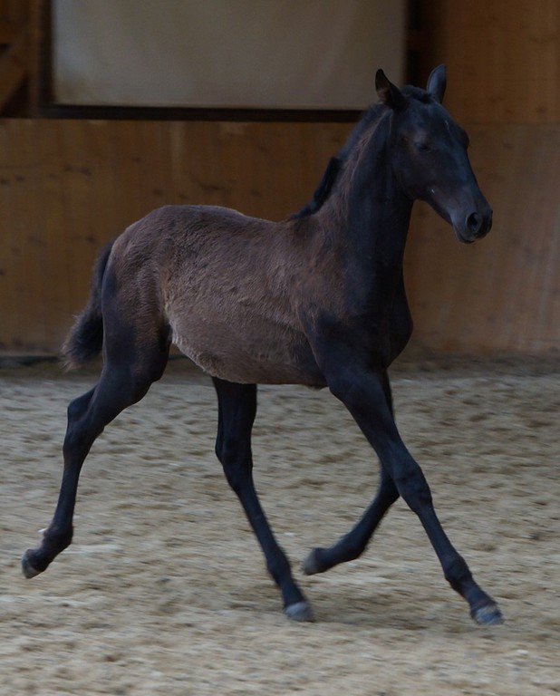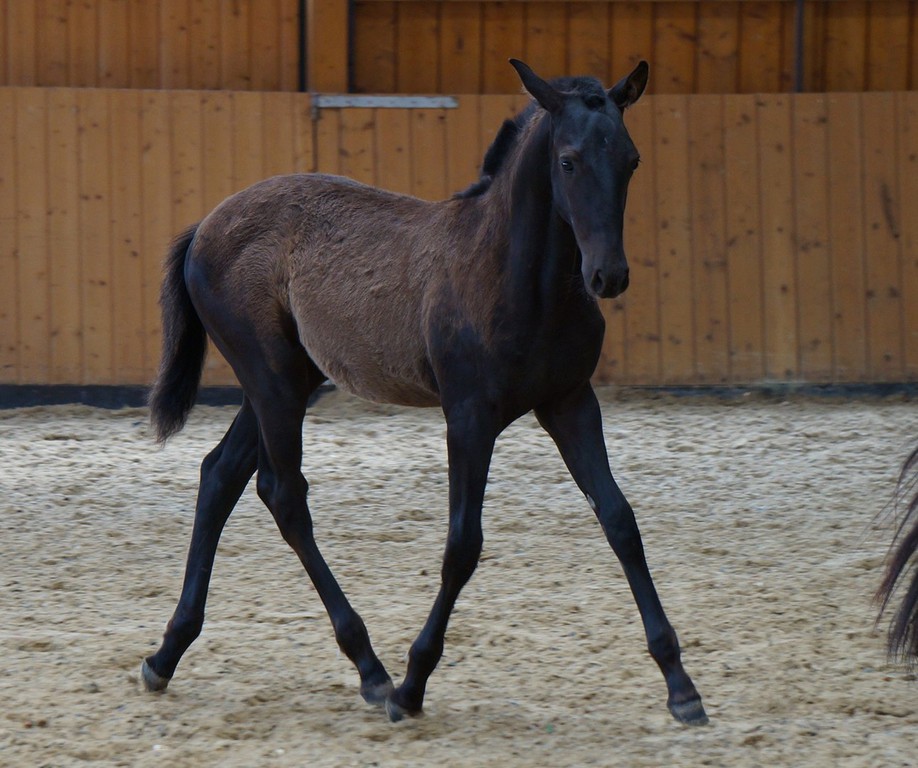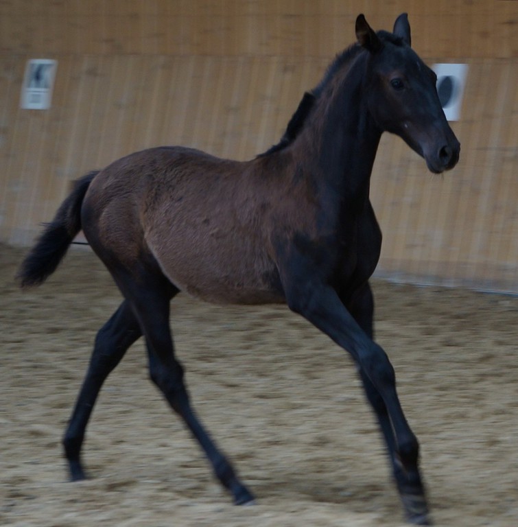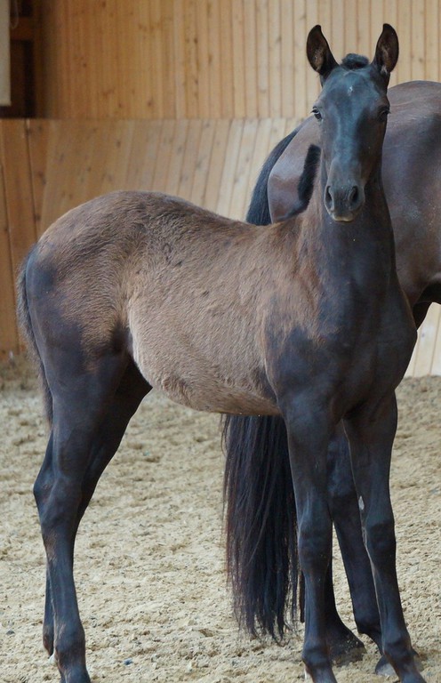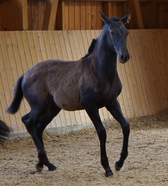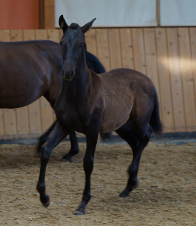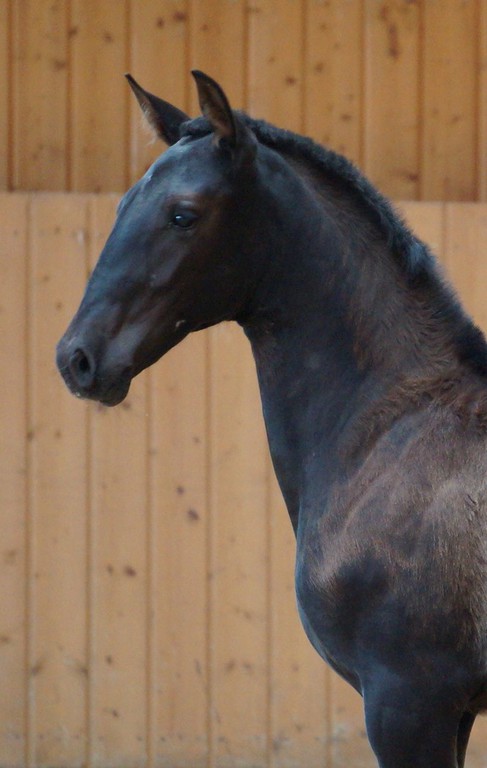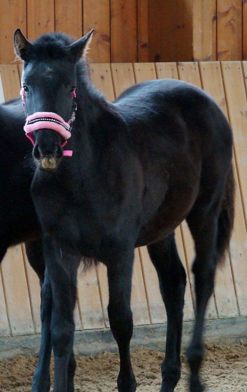 "Montana" wird eine große Stute ......bestimmt ein Endmaß von ca 163 - 165 cm erreichen....für den ambitionierten Dressur oder auch Freizeitreiter ....Rappen sind nach wie vor noch recht selten in der Lusitanozucht....