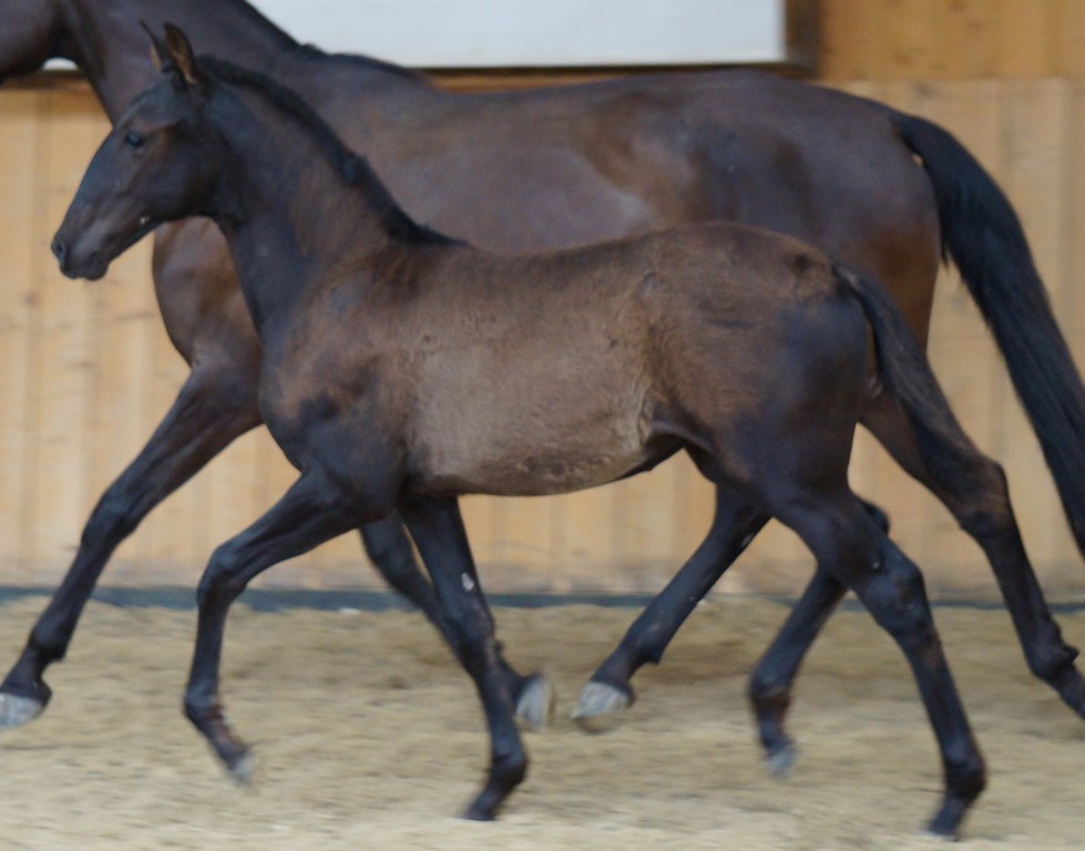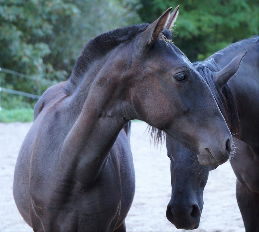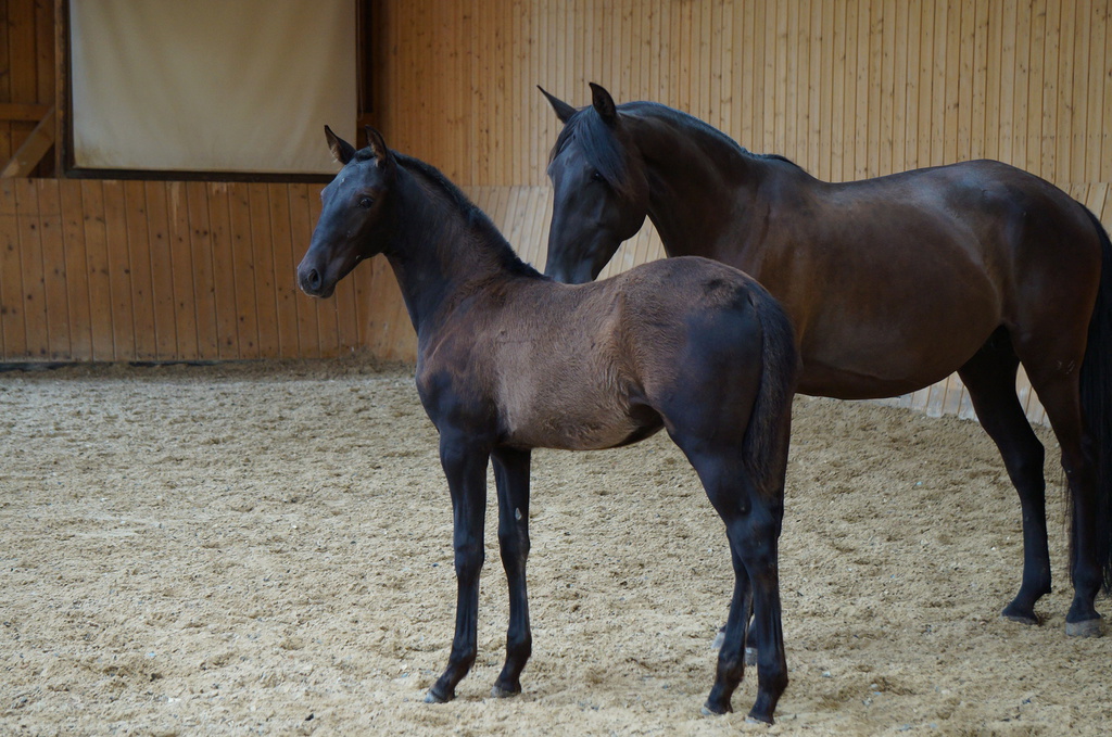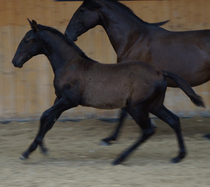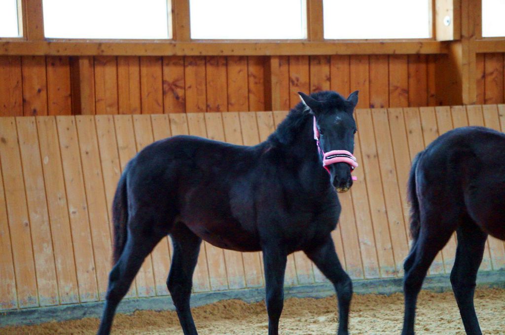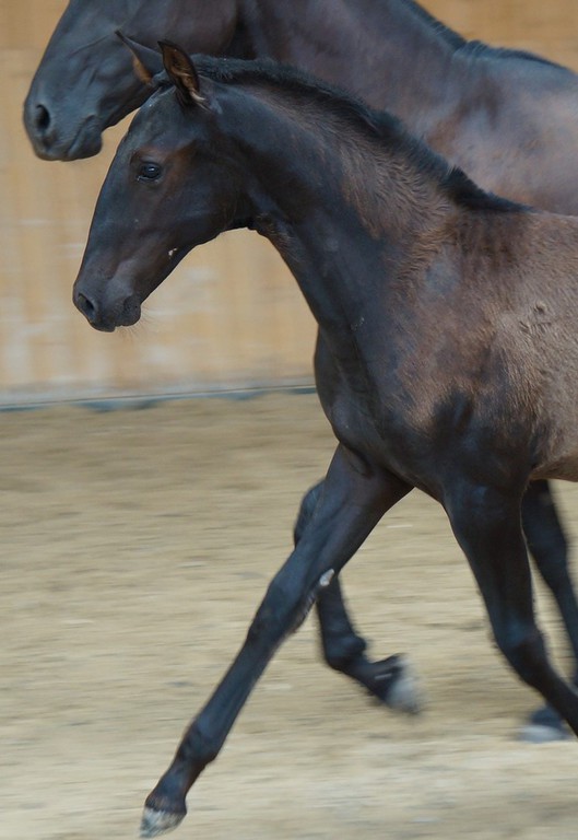 "Montana" wird eine große Stute ......bestimmt ein Endmaß von ca 163 - 165 cm erreichen....für den ambitionierten Dressur oder auch Freizeitreiter ....Rappen sind nach wie vor noch recht selten in der Lusitanozucht....