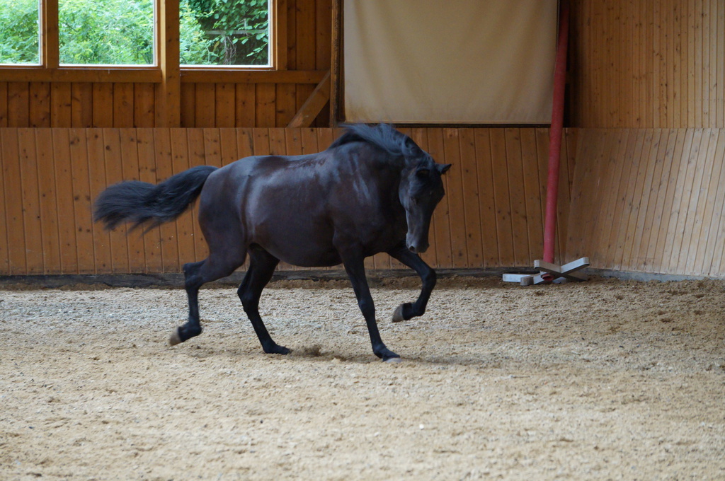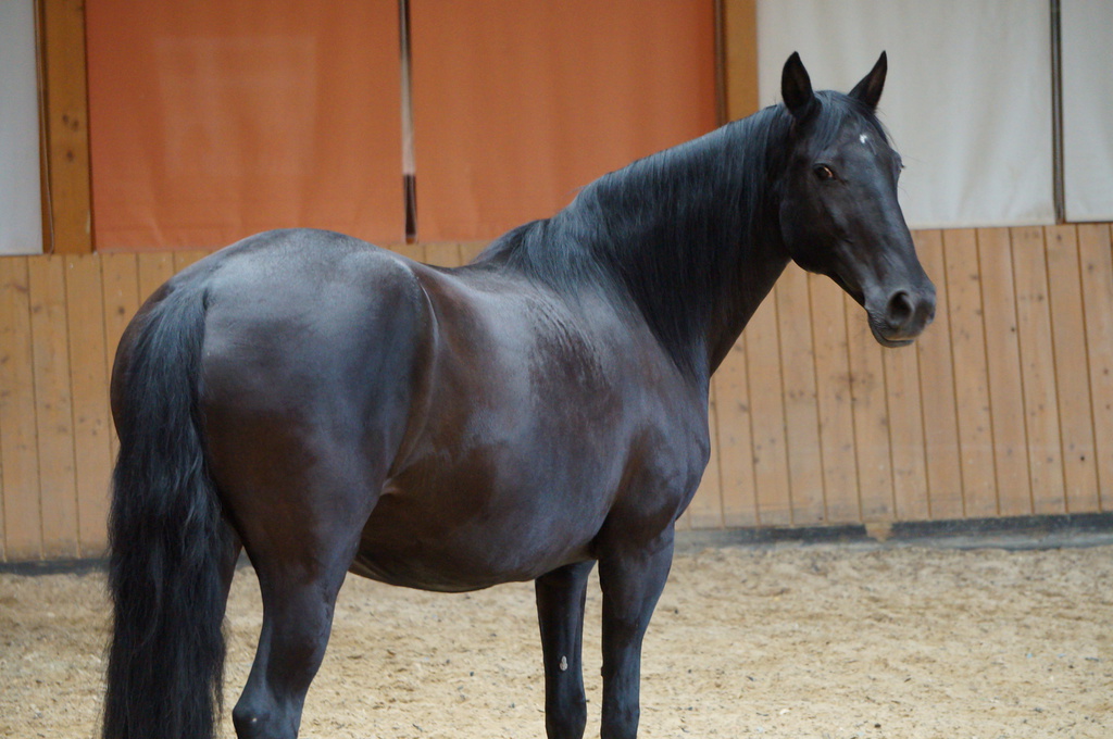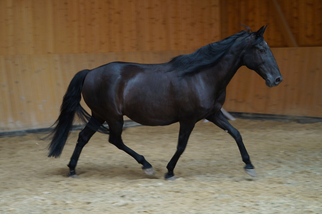 Lackschwarz - kompakt - harmonisch - absolut stark in Bewegung und Mechanik im Hinterbein.