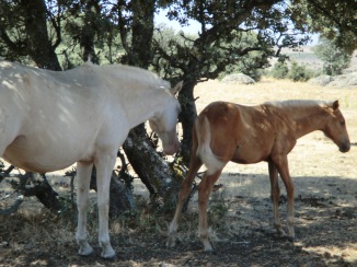 "Joanhina" wunderschönes Stutfohlen in begehrter Palomino-Farbe vom letzten Jahr, Mutter Delta (auf dem Foto daneben, Cremello, aus der Zucht Yeguada la Perla, Stm. ca 1,59m) und Vater Xinfrim (Fuchs, über 74Pkt. gekört, Stm. 1,65m), elegante federnde Bewegungen, korrekt, mutig, intelligent, kann zur Aufzucht bleiben, Preis VB 6000,- Euro.