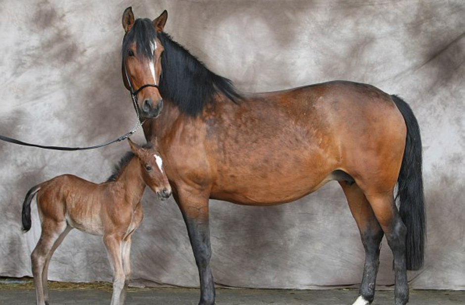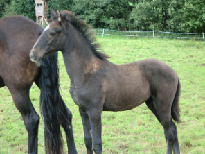 Stutfohlen wird mit großer Wahrscheinlichkeit auch groß, voraussichtlich beste Reiteigenschaften, tolle GGA, feiner aufgeschlossener vertrauensvoller Charakter, wunderschönes Rappstütchen mit interessant gefärbtem Vorderbein, könnte eventuell noch Schimmel werden, in der Vererbung dann aber Farben Rappe, Falbe, Cremello. Kann zur Aufzucht bleiben. Preis 6500,- Euro.